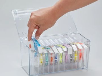 Stay Organized - Includes nine removable dividers and accommodates clamshell labels and labels on a roll. 500 and 1,000 label rolls will work in this dispenser.